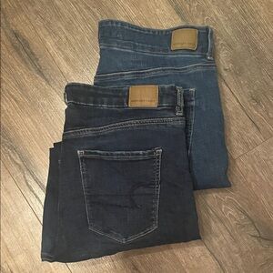 American Eagle Outfitters Women's Skinny Jeans - Dark and Medium Blue Bundle 2