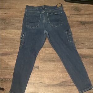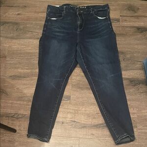 Chic skinny jeans by American Eagle Outfitters. Features dark and medium blue shades. Perfect for casual wear.
