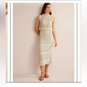 Boden Crochet Fringe Top and Skirt SET Size XS Top Size S Skirt