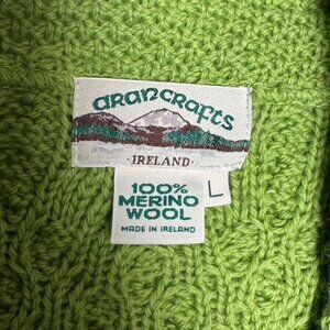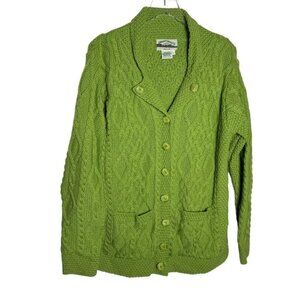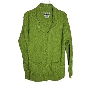 Aran Crafts Womens Green Cable Knit Cardigan Sweater Merino Wool