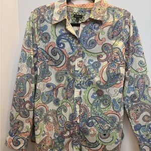 Talbots women’s cotton Multicolor Paisley button front shirt size M
