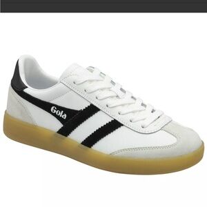 Used. Need cleaned. Gola trainers with a sleek white and black design. Comfortable and stylish for everyday wear.