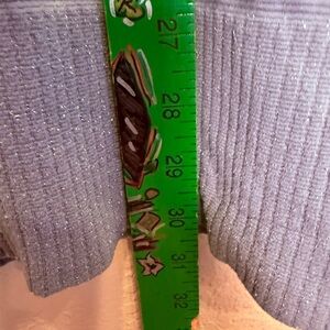 Women’s long sleeve top by Athleta. Lilac gray color with a shimmer of silver metallic throughout. Soft and comfortable. Perfect for staying warm during or after your yoga session. Ruching at sleeves and wide ribbed waist.