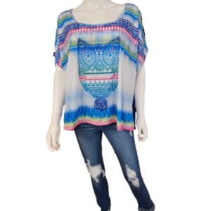 Bongo Plus Owl Inspired Short Sleeve High Low Blouse Size 3X