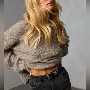 Chic and comfortable taupe sweater. Ideal for layering and casual wear.