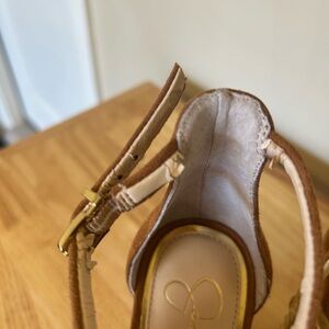 Elevate your look with these stylish tan suede wedges. Comfortable and versatile for any event.