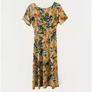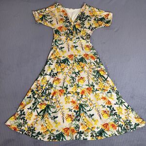 Alexia Admor Lane Boatneck Midi Dress Size XS Yellow Floral Side Slit