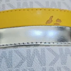 Stylish Michael Kors MK slides with Yellow and Silver straps.