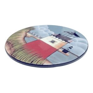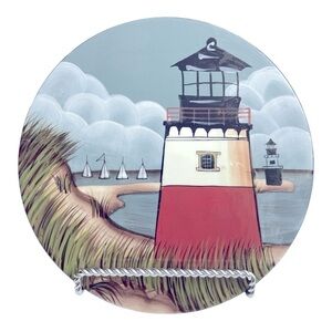 Sakuri By the Sea Hot Plate Lighthouse Beach Sailboats by David Carter Brown. 9.5 inch beautiful serving plate or trivet. No chips or cracks. Hand painted made in China