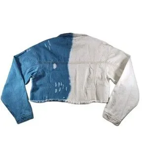 Spoon Jeans LARGE Distressed Cropped Denim Jacket Blue White Button Up Closure (sku: 2670);