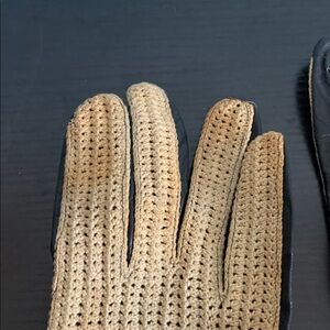 Vintage Dents Crochet & Leather Driving Gloves size 8 1/2. Leather is very soft. Inside tag says Dents and Made in Malta. Listing under men’s as a small, but they are really unisex and would be approximately a women’s large. The crochet has browned a little around the seams where it meets the leather. They are very comfortable, please see pictures.