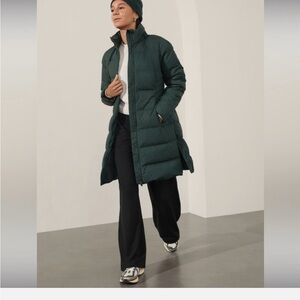 Downtown Parka in beautiful green color. Warm, cozy and flattering fit. Worn a handful of times but in excellent condition. Originally sold for $269.00 and out of stock at Athleta.