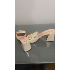 Gucci Nappa Charlotte Heeled Mules in Mystic White Size 41