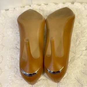 Calvin Klein Women's Cognac Brown Leather Heels Silver Logo Plate 8.5 Med