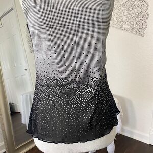 Early 2000’s Slinky Black Silver Gray Sheer Mesh Glitter Sequin Disco Cami S