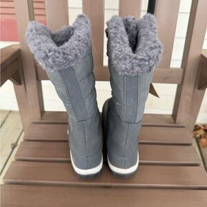 Warm winter boots with quilted pattern. Lace-up design for secure fit. Ideal for snowy days. They’ve been sitting in the front entry way - never worn. Just tried on. My loss your gain. No box.
