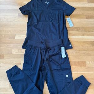 NWT UA Butter-Soft Stretch Scrub Set Black V-Neck BSS452 & Jogger BSS708 Size M