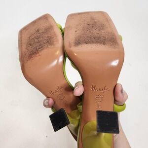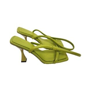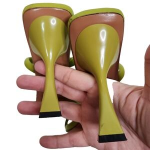 HANIFA Shoes Womens 8 38 Green Zeta Strappy Heel Sandals Square Toe Leather