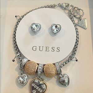 Guess Silver and Gold Heart Charm Bracelet with Earrings