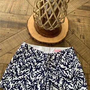 Stylish navy and white shorts. Bold pattern. Comfortable fit.