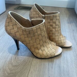 Cole Haan Open Toe Ankle Heel Bootie Woven Office Catalina Peep Toe 8.5 B