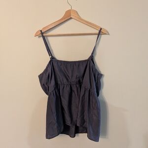 This elegant navy blue sleeveless top is perfect for any occasion. Its simple design offers a comfortable fit and versatile style.