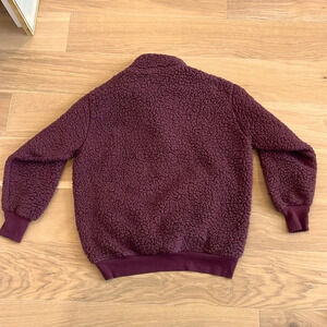 Express Fuzzy Sherpa Jacket Pullover Quarter zip Oversized Merlot Cranberry Plum