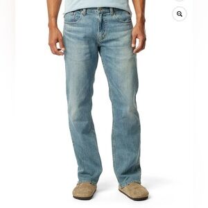 The Men's Relaxed Fit Jeans from Levis Strauss Signature.® have a relaxed fit through the seat and thigh with a straight leg opening, giving you a classic, easy look. Made from premium Flex denim, they give you superior comfort movability.