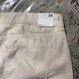 Mid-Rise Raw-Cut Denim Shorts Size 34 Color is light beige Brand is Forever 21