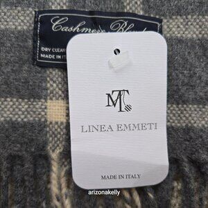 NWT Linea Emmeti Wool Cashmere Scarf Grey Plaid