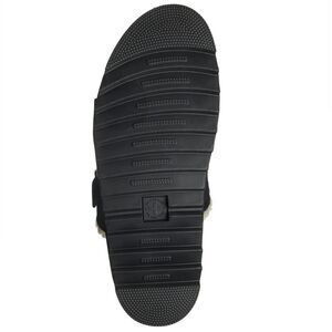 Go for full '90s grunge with a faux fur lined buckle-strap slide sandal with signature Doc Martens' gold welt stitches and a grooved sole.