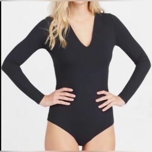 Spanx Suit Yourself Long Sleeve V Neck Bodysuit Black Shapewear Small