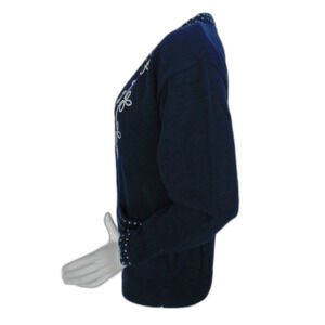 Vintage LEON LEVIN Sweater, M, Blue Wool Cardigan, Shoulder pads, Embroidered