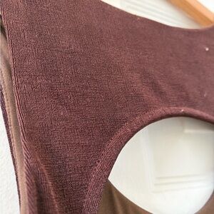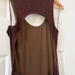 Open back dress and super comfy material. Discover elegance with this sleeveless brown dress, perfect for any occasion.