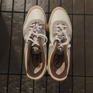 The Nike Air Pegasus 89 Golf 'PGA Championship' pays tribute to the annual golf tournament, which takes place in 2024 in Louisville, Kentucky. Earth tones are executed on the retro runner turned performance golf shoe, featuring an off-white leather upper with Nike Golf branding on the tongue tag and back heel.
