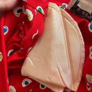 This vintage 80s Talbots dress is funky and fantastic! The dress has a colorful artsy Polkadot pattern all over with a matching belt! Dress has pockets, shoulder pads, and gold buttons on the front. Dress is in pristine condition with no rips, tears, or stains. Only minor flaw (pictured) is that 2 of the buttons on the front are a tad loose. This could easily be fixed with a small bit of sewing.
