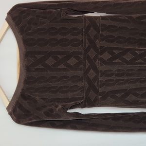 Juicy Couture dress, size S. Dark brown velour material, with embossed chain pattern. Long sleeves.Mini. Excellent preowned condition. Y2K