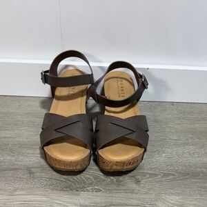 Journee Collection Vegan Leather Brown Strappy Platform Sandals NWOT Size 9