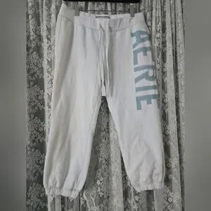 Vintage Y2K Aerie Cropped Sweatpants White Logo Joggers | Size S