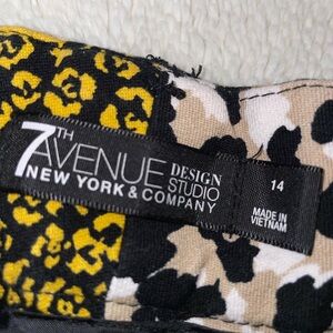 7th Avenue Slim Fit Yellow and Black Animal Print Ankle Pants