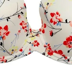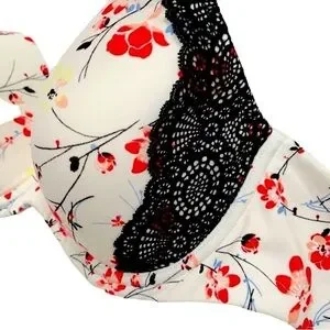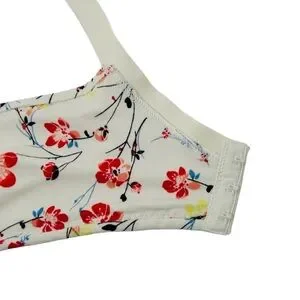 This charming bra showcases a delicate floral pattern, set against a crisp white background.