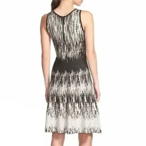 A streaky jacquard pattern follows the feminine fit-and-flare silhouette of a sweater-knit dress that will take you comfortably from desk to dinner.