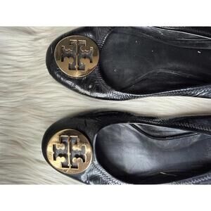 Tory Burch Black Leather Flats with Gold Logo