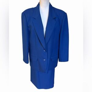 Leslie Faye 2pc Skirt Suit Royal Blue Size 16 Jkt Lined Skirt Elastic Waist Belt