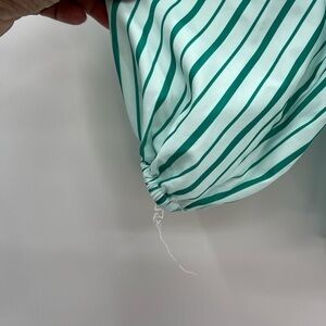 Elastic sleeve cuffs for a puffed, balloon sleeve look.