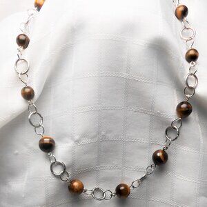 No.642 Handmade necklace and earrings with polished stones & antique silver rings