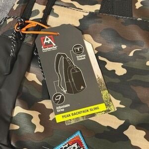 Keywords: sling backpack, chest bag, outdoor gear, travel accessory, urban exploration, hiking pack, camo print, adjustable strap, everyday carry, adventure bag, tactical style, daypack, menswear