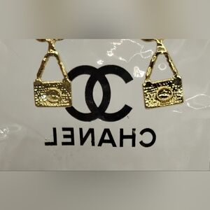 Stylish earrings with iconic bag design. Features gold accents and black details. Adds luxury to any look. Sterling Silver posts.