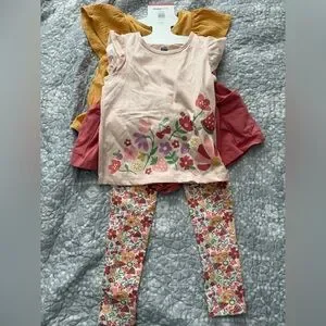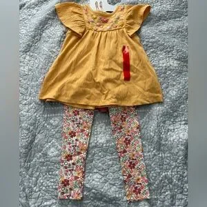 Kids Headquarters Mustard Dress and Floral Leggings Set