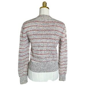 Ivory combo color. Crew neckline, ribbed at edges, hits at waist, cotton/Acrylic/polyester/nylon/spandex